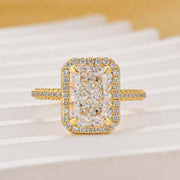 This ring was designed for the woman who embraces both elegance and excitement, featuring a dazzling 3.5 carat radiant cut center stone framed by a sparkling halo. Crafted in sterling silver, it captures the light—and attention—wherever you go, making it the perfect choice as a stunning travel ring or a bold statement piece for everyday wear. Wear it solo for a sleek, sophisticated feel, or stack it for added brilliance.