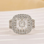 This 3.0Ct princess cut double halo split shank engagement ring in sterling silver brings together timeless beauty and contemporary detail. The sharp brilliance of the princess cut is beautifully framed by a double halo that adds extra sparkle and dimension, while the split shank offers an elegant and balanced silhouette. It’s the kind of ring that catches the light—and attention—effortlessly, making it a stunning symbol of love with a bold, confident edge.