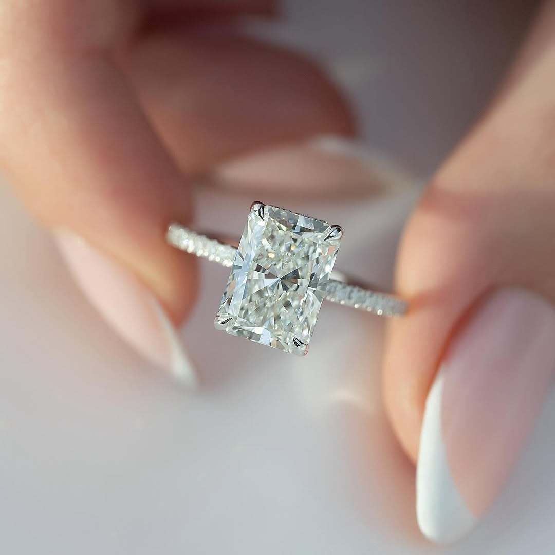 Design Inspiration: Symbolizing the everlasting bond of love, this exquisite piece showcases a radiant-cut stone that dazzles with its brilliance and fire. The unique facets of the radiant cut create a stunning play of light, capturing the essence of your love story. Crafted with meticulous attention to detail, this ring embodies the perfect blend of sophistication and grace. Its sleek silver band adds a touch of modernity, while the radiant-cut stone takes center stage, radiating a captivating sparkle that will leave a lasting impression.With its classic design and enduring beauty, this radiant-cut engagement ring is a testament to your eternal love. Let it be a symbol of the promises you make to each other, a reminder of the journey you embark upon together.